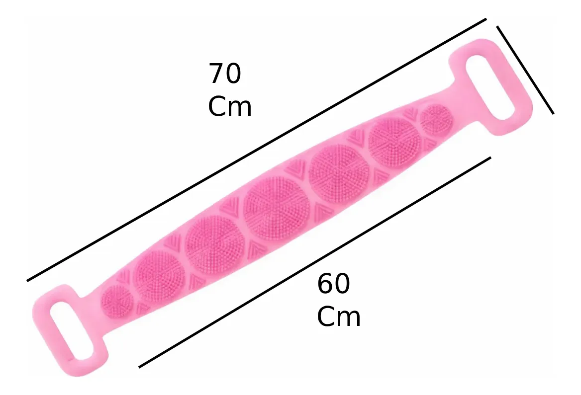 ESPONJA DE SILICONA EXFOLIANTE PARA LA ESPALDA. CON AGUJEROS EN LOS DOS EXTREMOS. UN LADO EXFOLIANTE Y OTRO MASAJEADOR. IDEAL PARA DARTE UN BAÑO RENOVADOR. COLORES SURTIDOS: VERDE, CELESTE, VIOLETA Y ROSA. Medidas: Largo Exfoliante: 60 Cm. Largo Total: 70 Cm. Ancho: 8,5 Cm.