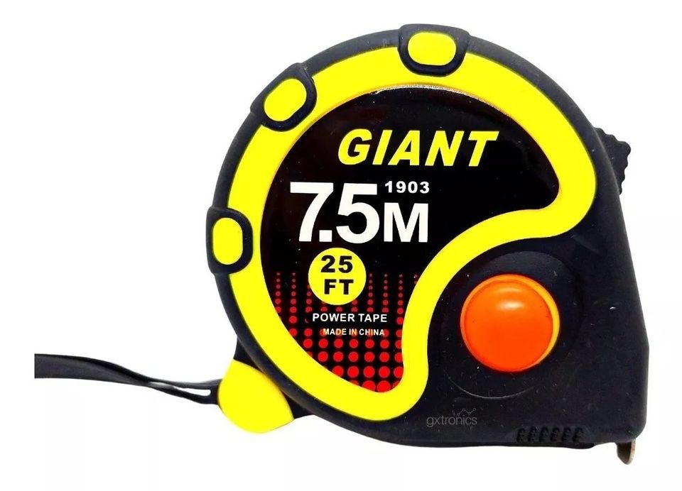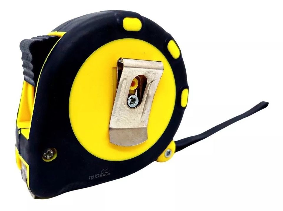 • 7 metros de cinta métrica metálica retráctil. • Unidad de medida: métrica (milimetros, centrimetros y metros). Algunos pueden incluir medida en pulgadas, pero NO ESTA 100% GARANTIZADA, ya que varía dependiendo del lote. • Robustas y reforzadas. • Recubiertas de Goma para facilitar agarre. • Cinta recubierta de laca para máxima duración. • Con clip sujetador de cinturón metálico. • Correa de sujeción. • Triple sistema de frenon con botones de tranca: inferior, lateral tipo pulsador y frontal para dejar la cinta fija. • Números grandes de fácil lectura. • Diámetro: 60mm. • Ancho: 33mm. • Material: Plástico y Metal. • Medidas: 7 cm. x 7 cm. x 3,7.5 cm.