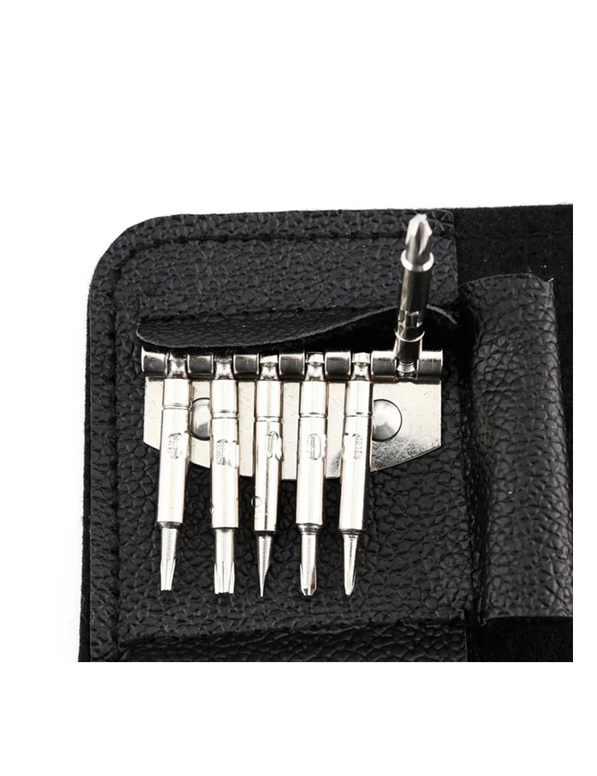 • La cabeza del destornillador está hecha de acero al cromo vanadio. Después de un tratamiento térmico especial, la dureza puede alcanzar Hrc52 ~ 60. • 24 cabezales de destornillador, especificaciones completas, se pueden adaptar para trabajar en una variedad de campos diferentes. • El mango está hecho de Material de aleación de aviación, que es ligero y duradero. • Magnético: el mango tiene un imán integrado para sujetar el cabezal, simplemente insertelo en el mango para usar. Aplicable a: mantenimiento y montaje de la mayoría de productos digitales, todo tipo de ordenadores, teléfonos móviles, cámaras, gafas, relojes, etc.