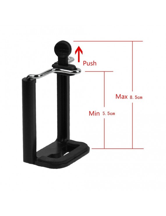 Soporte telefónico ajustable y ligero, fácil de usar. - Con agujero trípode estándar, se puede instalar en cualquier trípode ¼” - El estiramiento es elástico y automático - La ranura tiene un acolchado en los lados y la parte delantera, de dos niveles, fortalecer las abrazaderas de esponja para evitar que se caiga. Es eficaz y antideslizante.