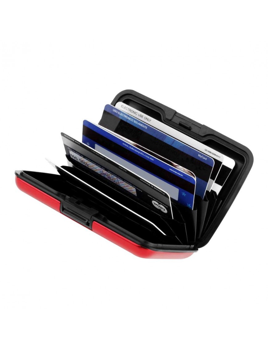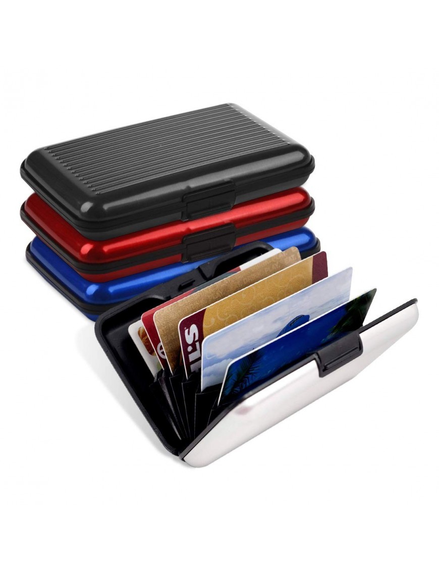 Cartera elegante con cuerpo de plástico resistente recubierta por aluminio de calidad. Dimensiones: 110mm x 75mm x 20mm a prueba de agua. Cartera para tarjetas con capas de aluminio con estilo para proteger sus tarjetas. El mejor invento hasta la fecha para mantener sus tarjetas seguras. Acanalado por un lado y liso por el otro.