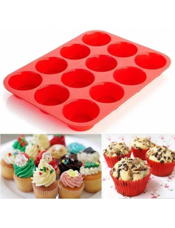 Molde De Silicona Para Muffins Y Cupcakes Medianos X12
