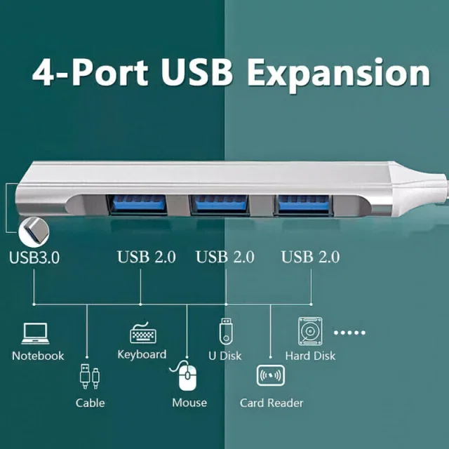 Hub USB-C 4 Puertos 3 Puertos USB 2.0 + 1 Puerto USB 3.0 Para Pc Notebook Netmak