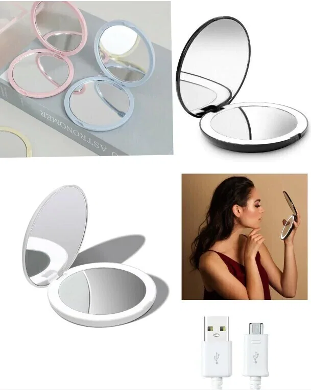 Espejo De Maquillaje De Viaje Con Luz Led