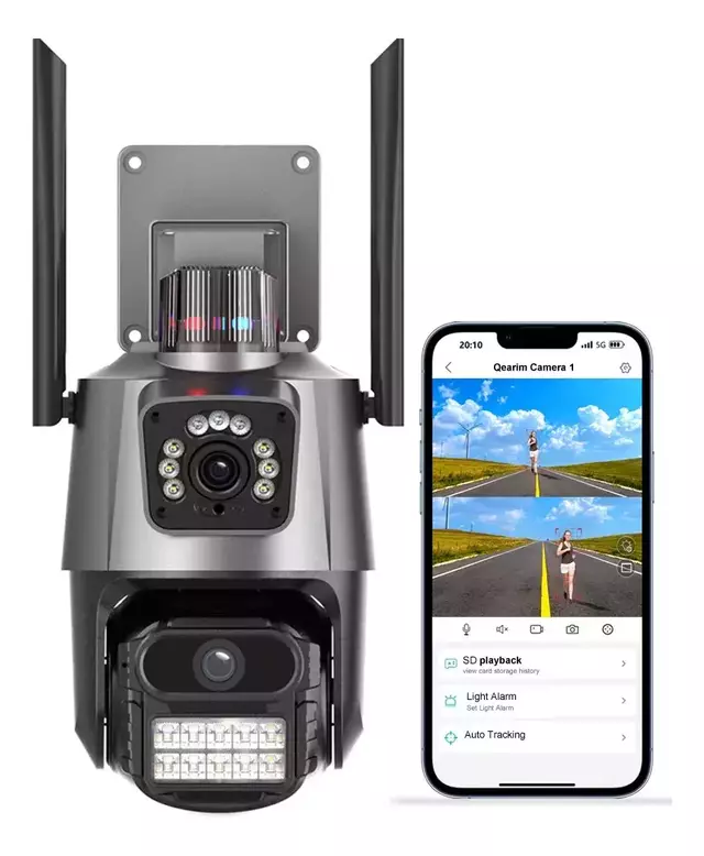 La Cámara PTZ IP Inalámbrica Doble Lente Exterior 6MP 4x de la marca Epa, modelo EP11-QQ6M, es la solución perfecta para la vigilancia tanto en exteriores como en interiores. Con una calidad de resolución de 6MP, esta cámara ofrece imágenes nítidas y claras, gracias a sus lentes de 3.6mm que permiten un campo visual de 90°. Su capacidad de movimiento motorizado PTZ permite una rotación de 355° de izquierda a derecha y 90° de arriba hacia abajo, asegurando una cobertura completa. Además, cuenta con visión nocturna a color y en blanco y negro, gracias a sus 11 luces infrarrojas y 12 luces LED. Compatible con la app Icsee y dispositivos iOS y Android, esta cámara soporta Onvif y Netip, garantizando una conectividad versátil y eficiente. Ideal para quienes buscan seguridad y tecnología avanzada en un solo dispositivo.