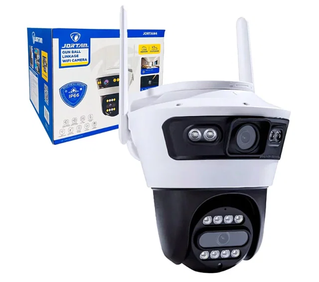 Cámara De Seguridad Exterior PTZ Doble Lente IP Wifi, 3,6 mm, con sensores infrarrojos Jortan