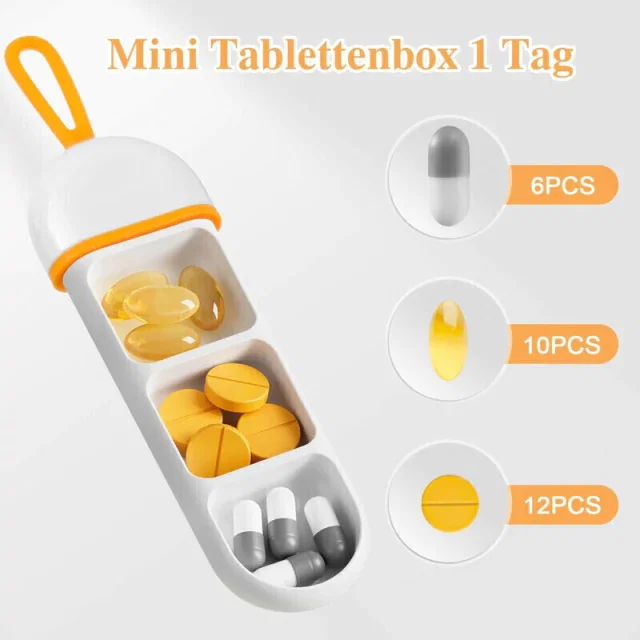 Organiza tus medicamentos de manera eficiente con el Pastillero Organizador de Pastillas de Viaje Este práctico modelo horizontal cuenta con tres compartimentos, ideal para mantener tus dosis diarias en orden y al alcance de la mano. Su diseño compacto, con dimensiones de 11 cm de largo y 3,6 cm de ancho, lo convierte en el compañero perfecto para tus viajes o para el uso diario.
