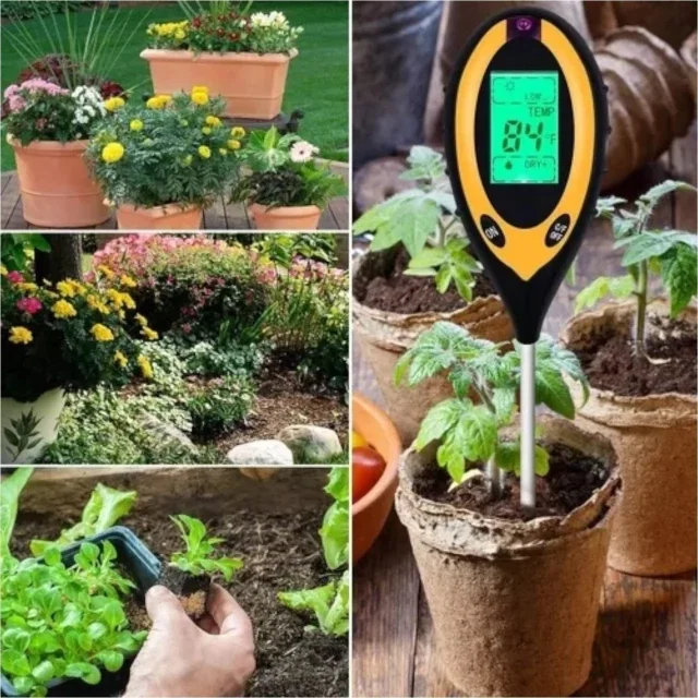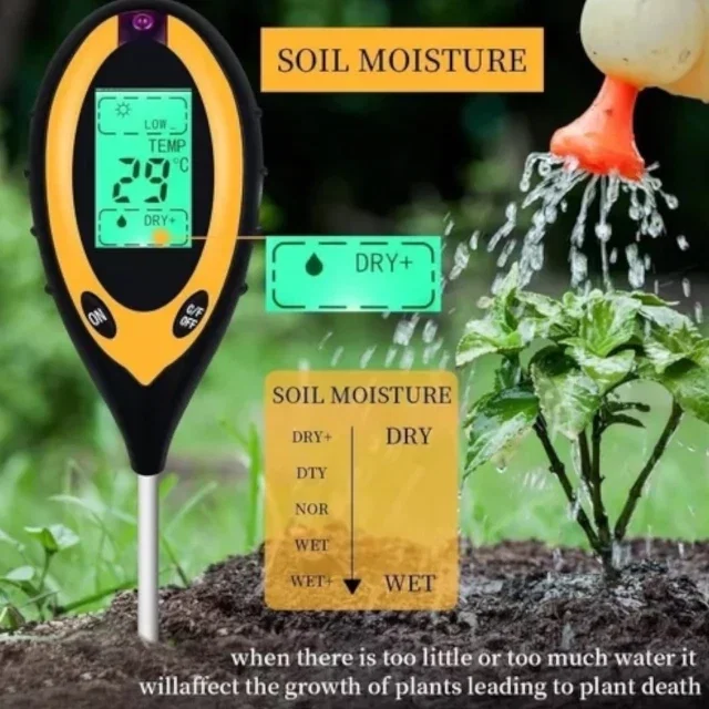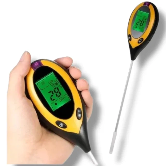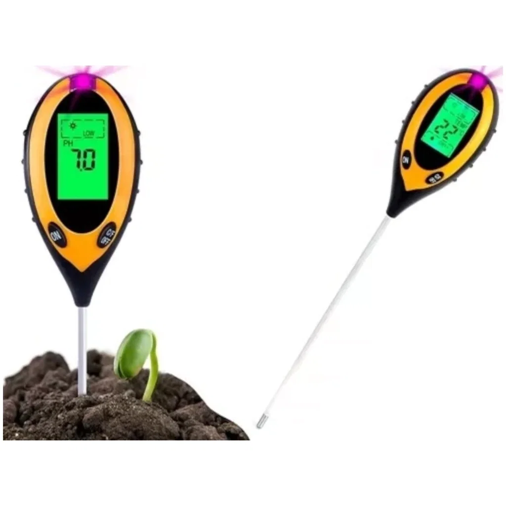Instrumento multifunción diseñado para medir con precisión el pH, la humedad, la temperatura y la intensidad de luz en el suelo. Ideal para jardinería, agricultura y control de cultivos.