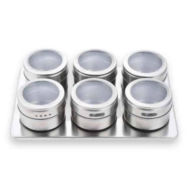 - Set de 6 Especieros: Este set incluye 6 especieros magnéticos, ofreciendo suficiente espacio para almacenar una variedad de especias y condimentos.