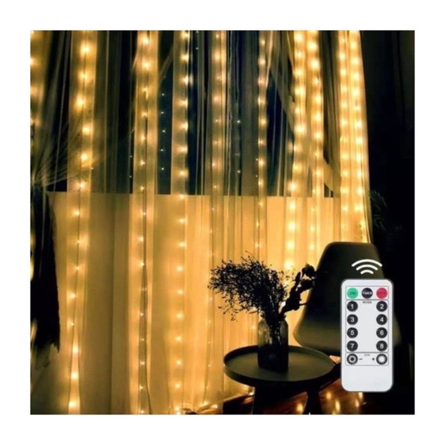 La cortina LED de 300 luces con 10 tiras y control de efectos de la marca Alitrade es una opción perfecta para decorar cualquier espacio con un toque de elegancia y calidez. Ideal para fiestas, eventos y decoraciones navideñas, esta cortina de luces crea un ambiente acogedor y atractivo.