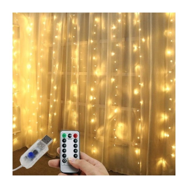 - Tamaño: La cortina mide 3x3 metros, cubriendo una amplia área y proporcionando una decoración impactante.