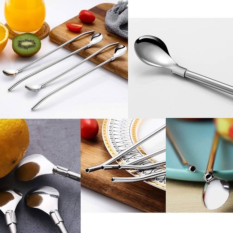 Cuchara Set X6 Para Coctel Barman Bombilla Sorbete De Acero Inoxidable