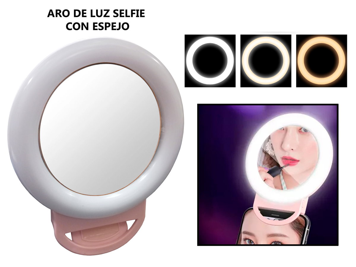 ARO DE LUZ SELFIE CON ESPEJO 12CM CON 3 TIPOS DE ILUMINACIÓN HR-20