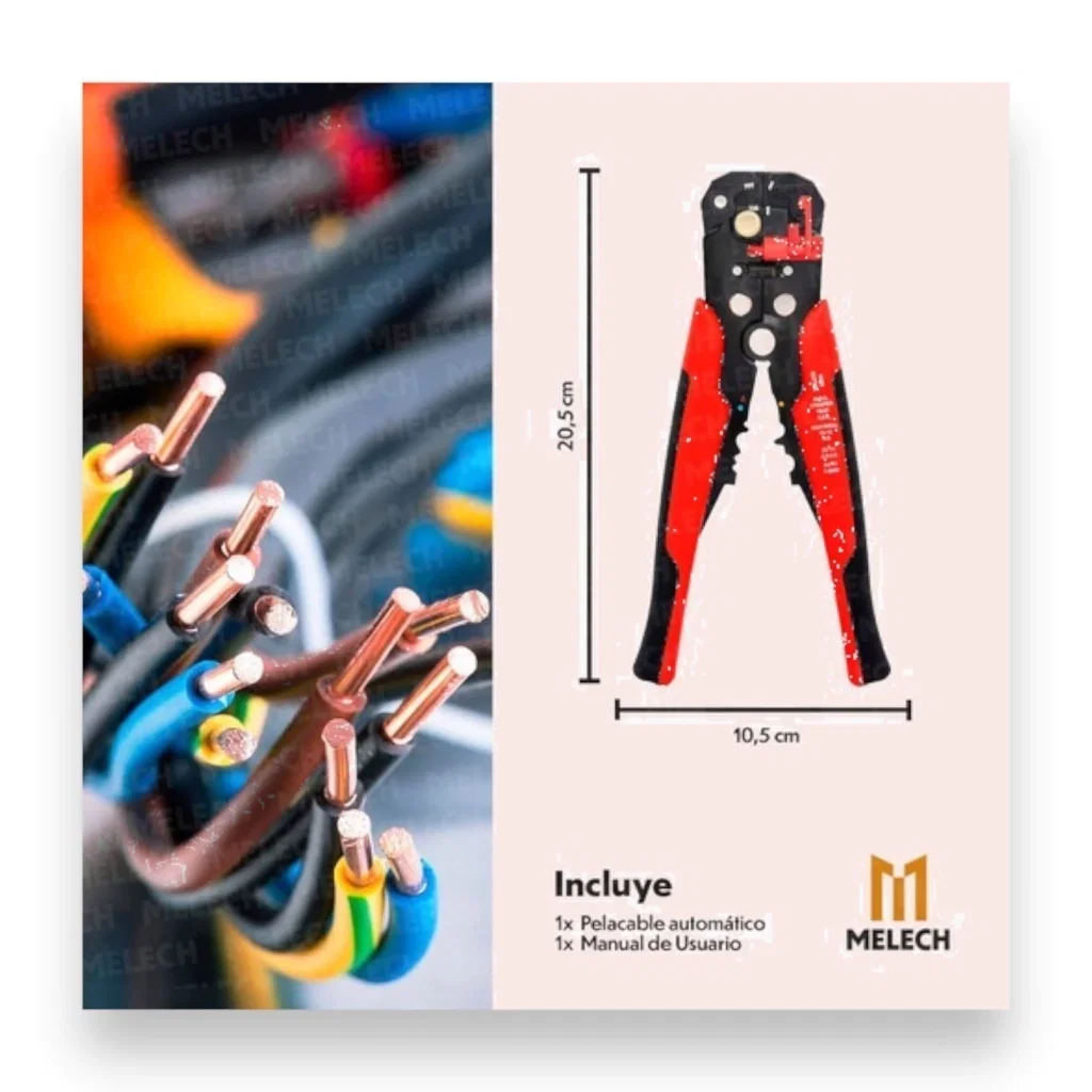 Descripción: La pinza pelacable frontal automática es una herramienta versátil y conveniente para tareas de pelado y corte de cables. Con un calibre de pelado y corte de 6mm, es ideal para una amplia gama de cables. Su diseño automático y autoajustable facilita su uso, mientras que el mango antideslizante proporciona un agarre cómodo y seguro. Además, esta herramienta también funciona como crimpeadora, brindando funcionalidad adicional. Con la calidad y confiabilidad de la marca Melech, el GML131 es una excelente adición a cualquier kit de herramientas.
