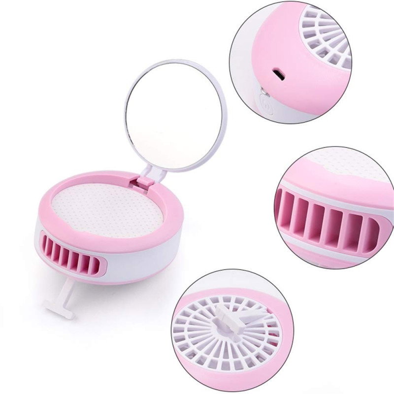 Ventilador portátil eléctrico multifuncional con espejo, mini ventilador de mano recargable por USB para extensión de pestañas