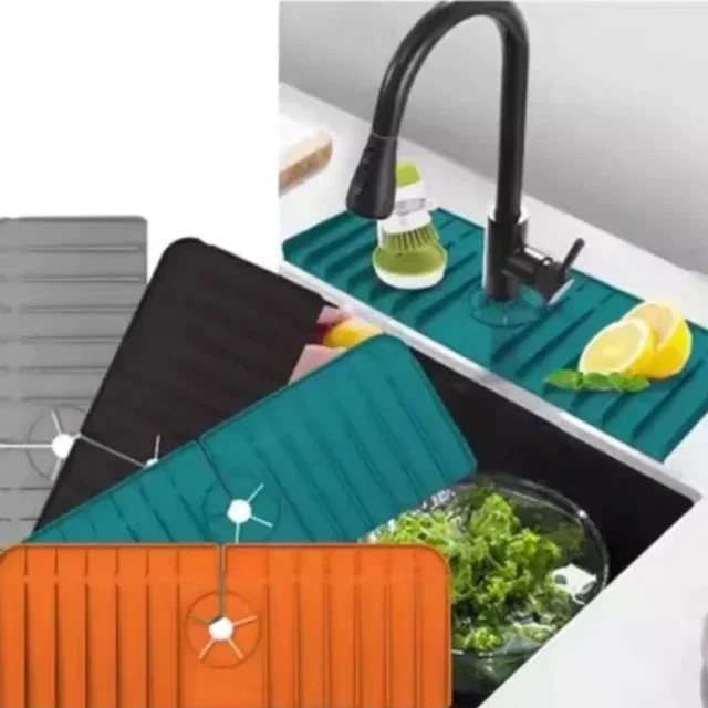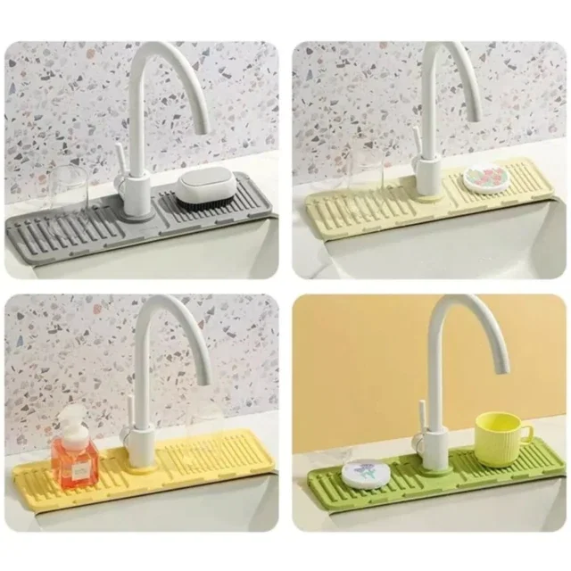 💧 Evitá charcos y mantené tu cocina limpia y seca con esta práctica alfombrilla de silicona para grifería. Su diseño inclinado y flexible dirige el agua directamente hacia la pileta, evitando acumulaciones alrededor del grifo.