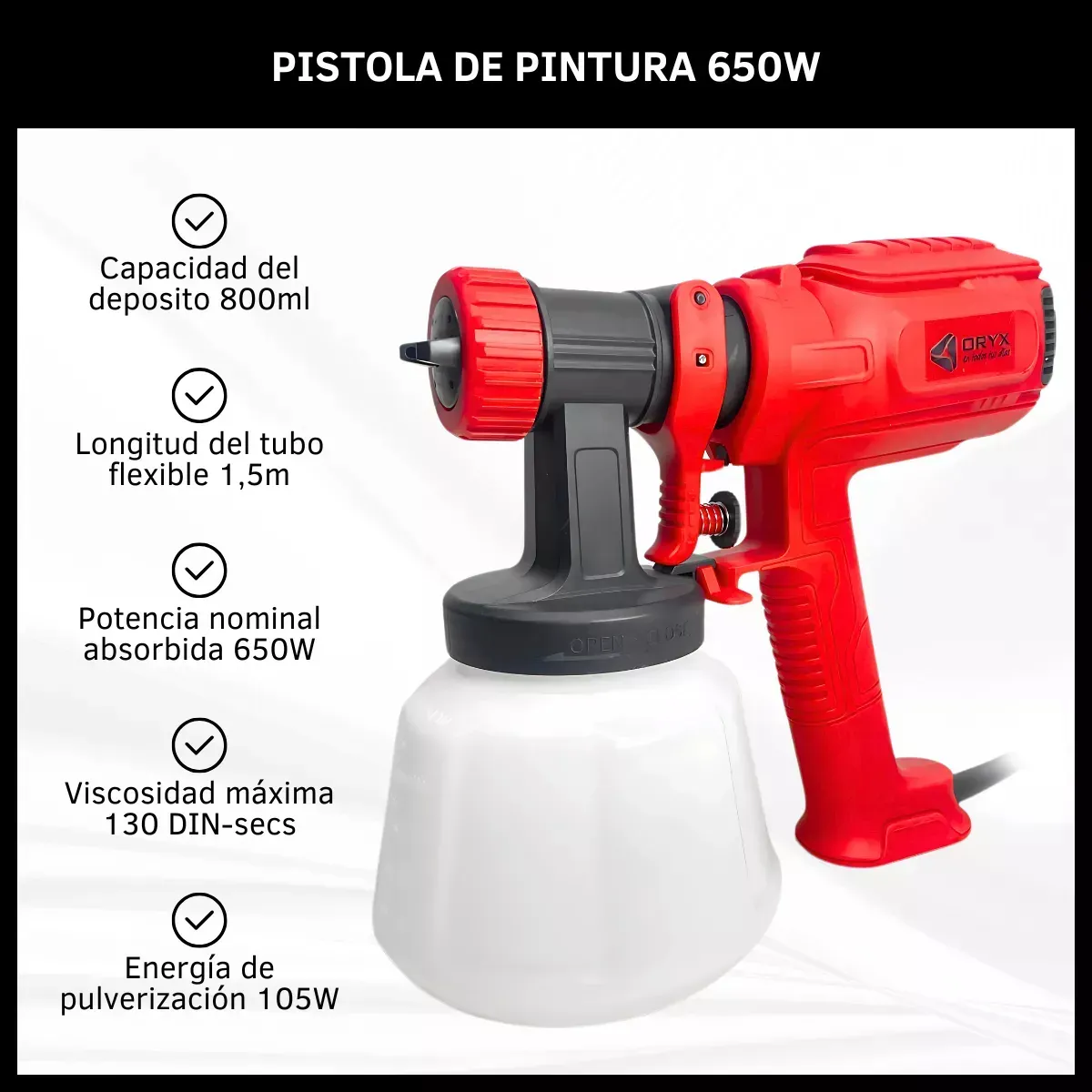 La maquina eléctrica Oryx TL0503 es la herramienta ideal para lograr un acabado profesional, uniforme y rápido en tus proyectos de pintura. Con su motor de 650 W de potencia, permite aplicar pintura látex, esmalte o barniz de manera sencilla y práctica, tanto en interiores como exteriores.