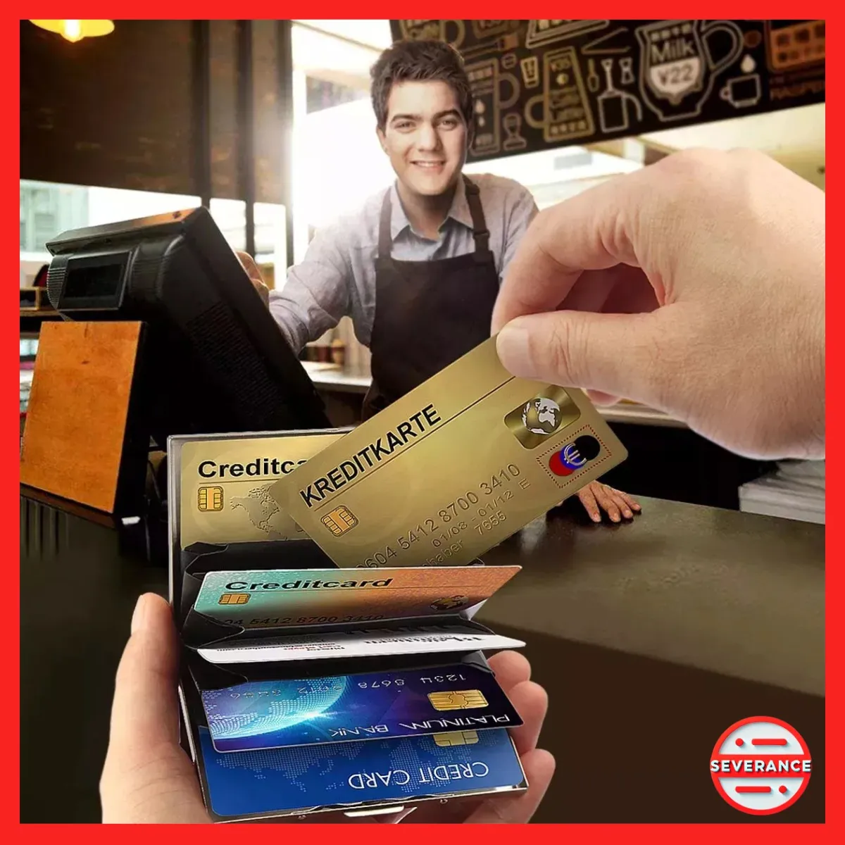 Conveniencia: La ranura flexible en forma de acordeón se ajusta perfectamente al soporte de la tarjeta y es lo suficientemente ancha como para acomodar sus tarjetas de crédito, tarjetas de visita y billetes doblados.