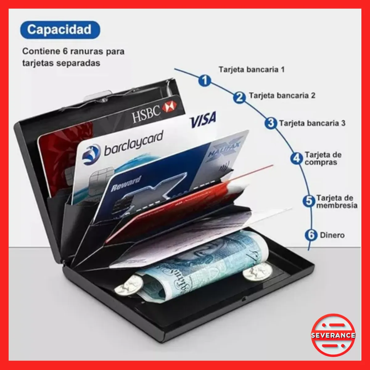 Alta Seguridad: Este tarjetero de acero anti RFID de bolsillo puede evitar que escanee y clone de manera fraudulenta sus datos personales y financieros.