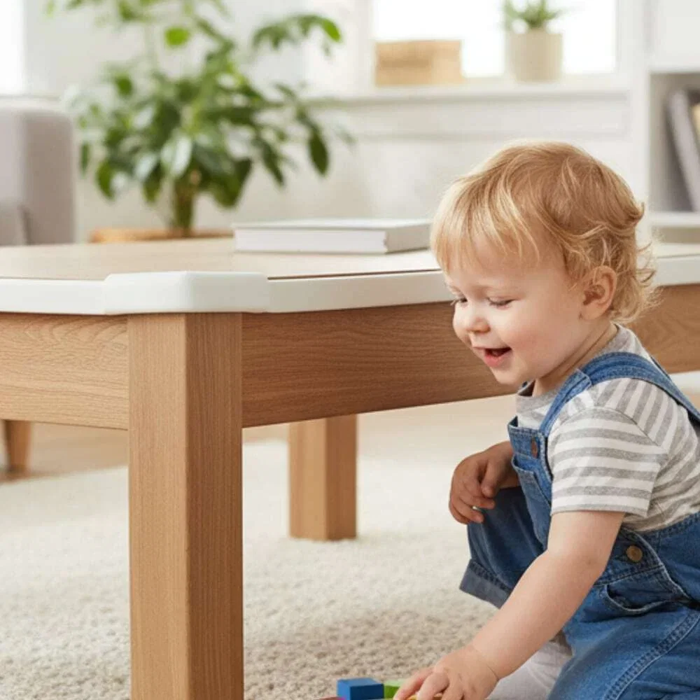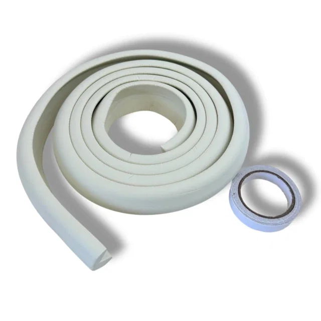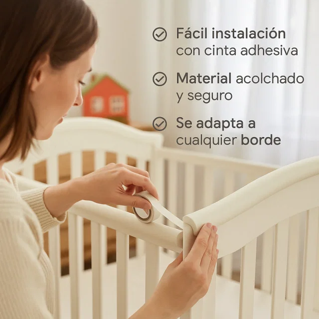 Protector acolchado diseñado para cubrir bordes y esquinas, evitando golpes o accidentes. Se adapta fácilmente a diferentes superficies y se instala con cinta adhesiva incluida.