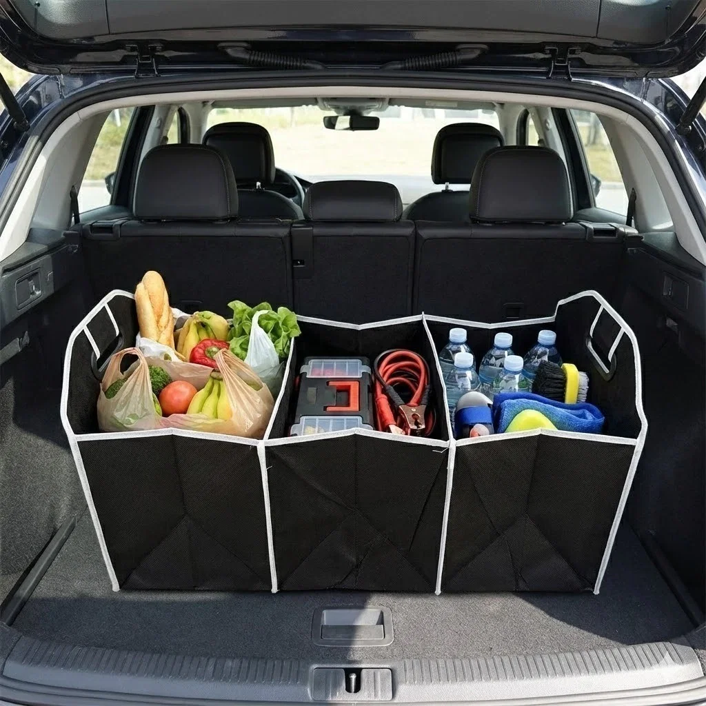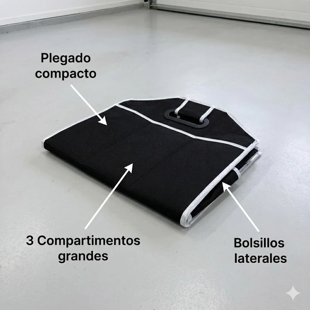 Solución práctica para terminar con el desorden en el auto. Este contenedor desplegable te permite separar las compras del súper, herramientas, botellas o kits de limpieza, evitando que los objetos se golpeen, rueden o vuelquen en cada curva. Su diseño inteligente permite usarlo a capacidad completa o plegarlo totalmente para que no ocupe lugar cuando está vacío.