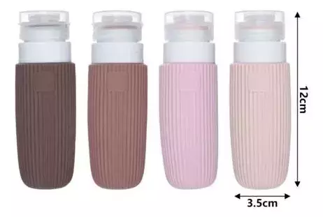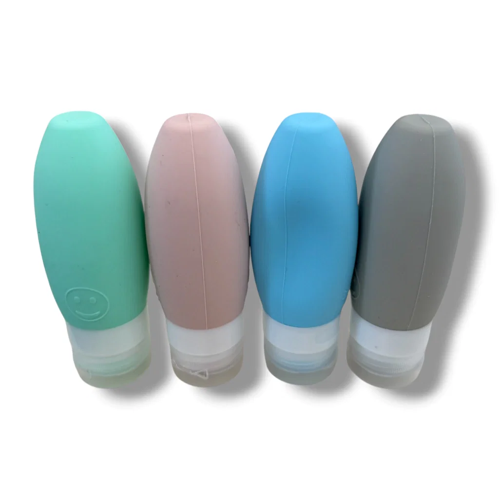 Botellitas recargables de silicona flexible, diseñadas para transportar shampoo, crema, acondicionador o gel en viajes.