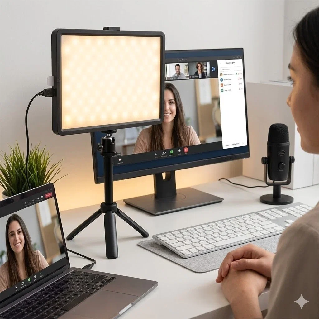 Este panel de iluminación LED rectangular es una herramienta esencial para mejorar la calidad de imagen en videollamadas, streaming, maquillaje o fotografía de producto. Su sistema permite ajustar tanto la temperatura del color como la intensidad lumínica directamente desde el cable, ofreciendo una luz suave y difusa sin necesidad de equipos pesados.